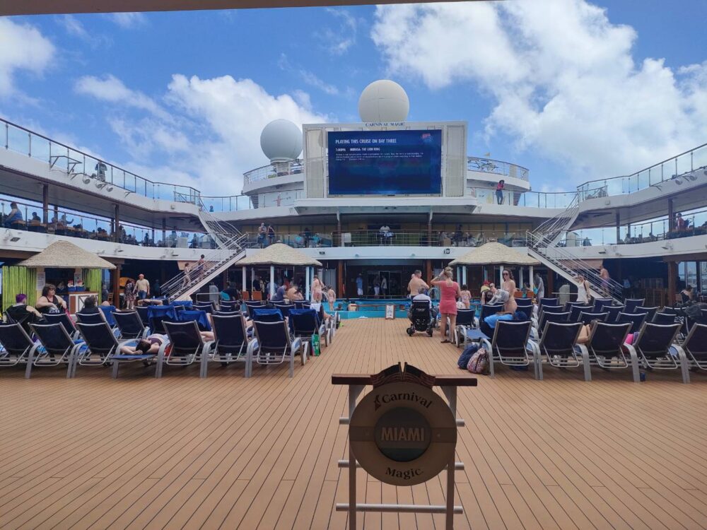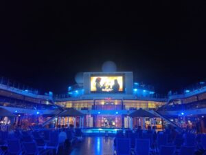 この大型スクリーンで夜は毎日映画の上映があります。