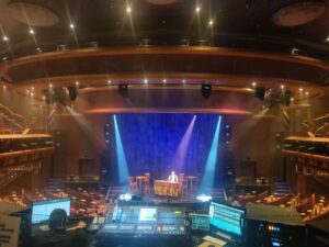 イベントのハイライトは専用劇場でのミュージカルや音楽ライブです。