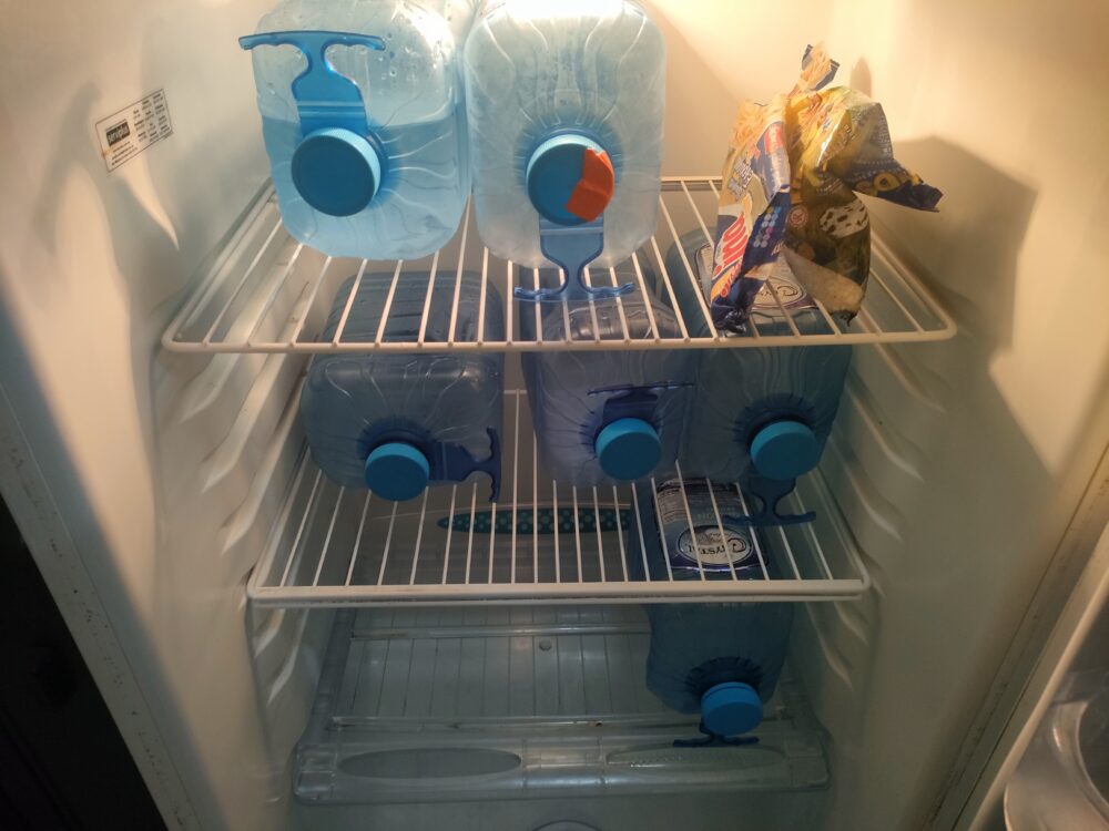 冷蔵庫は水とコメ、たまにパスタしか入ってないです。